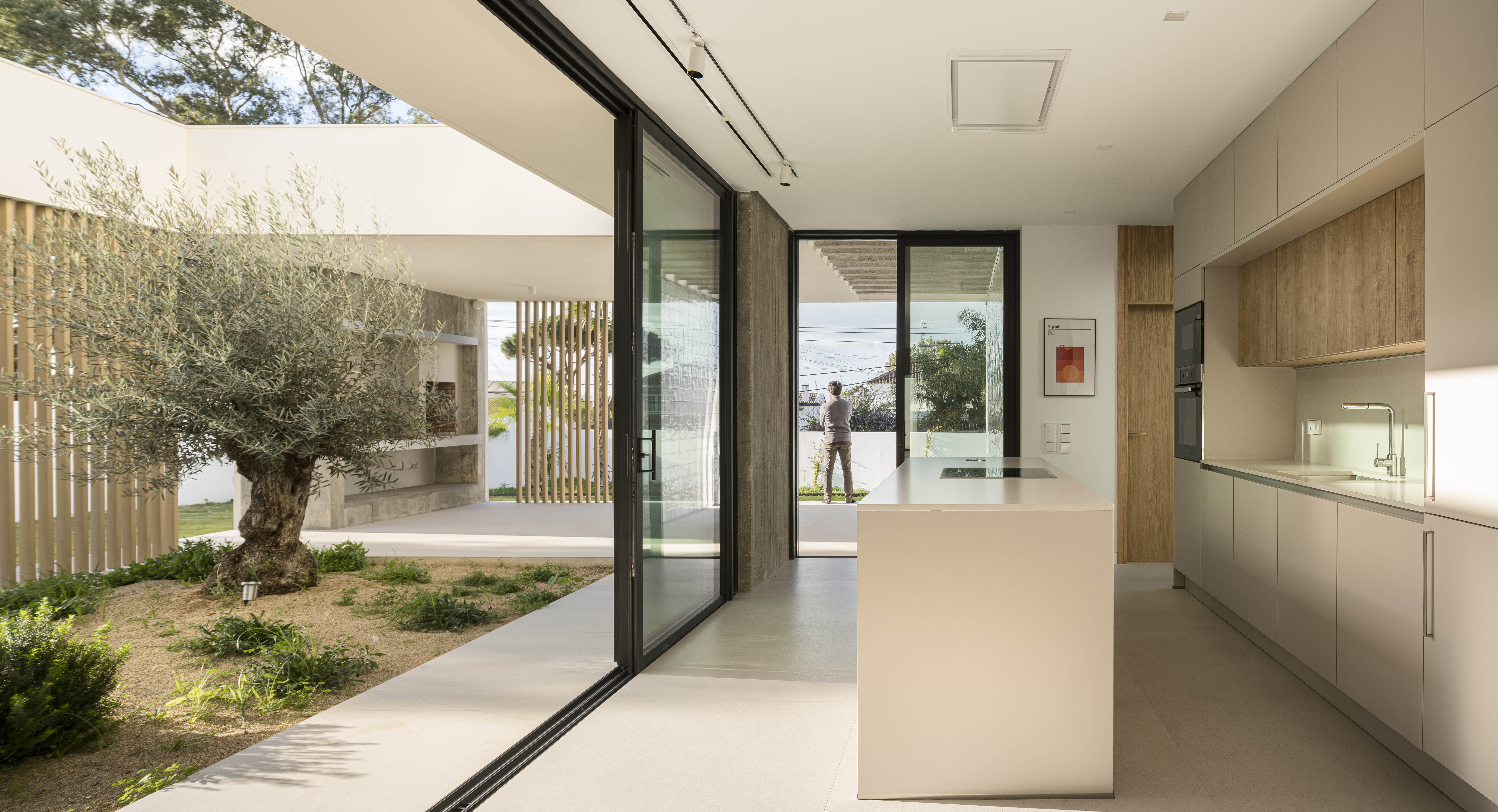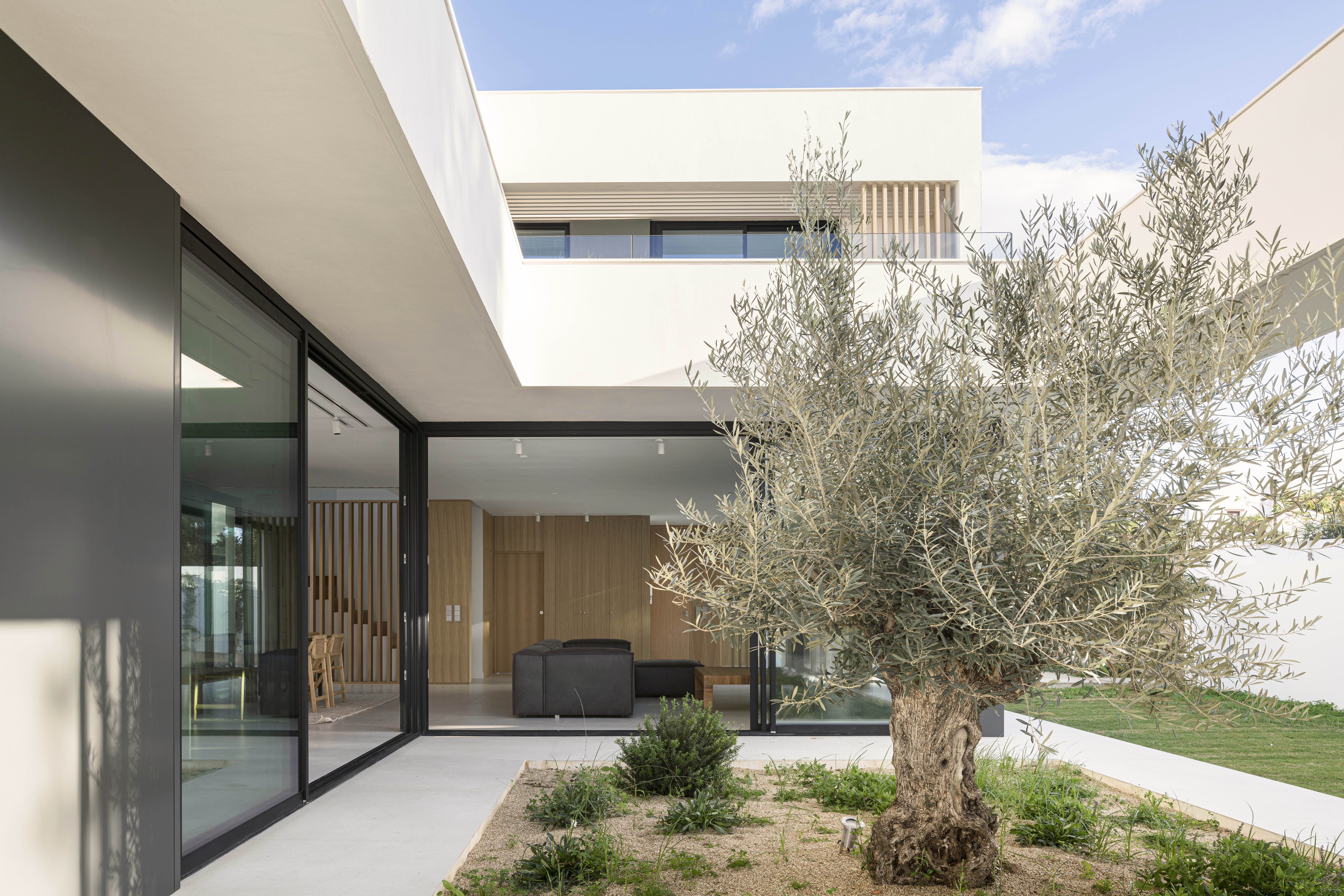 An exercise of permament dissolution between interior and exterior around an olive tree .